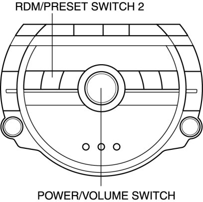 3. While pressing the POWER/VOLUME switch, simultaneously press the RDM/PRESET switch 2 for approx. 1 s.