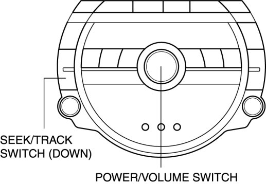 1. With the audio power ON, press the POWER/VOLUME switch and simultaneously press the SEEK/TRACK switch (down) for approx. 1 s.
