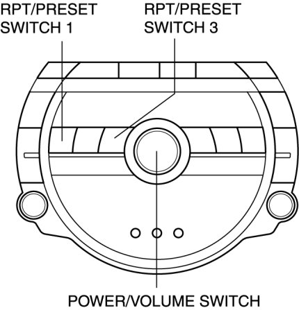 1. With the audio power ON, press the POWER/VOLUME switch and simultaneously press the RPT/PRESET switch 1 and AUTO-M switch for approx. 3 s.