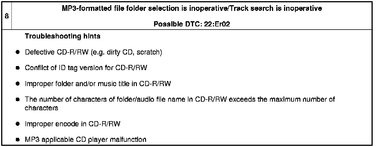 No.8 MP3-Formatted File Folder Selection Is Inoperative/Track Search Is Inoperative