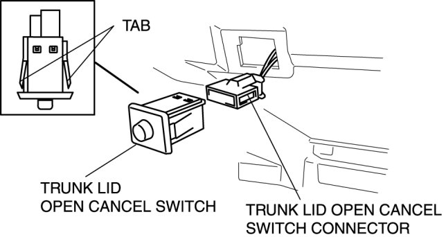 TRUNK LID OPEN CANCEL SWITCH REMOVAL/INSTALLATION