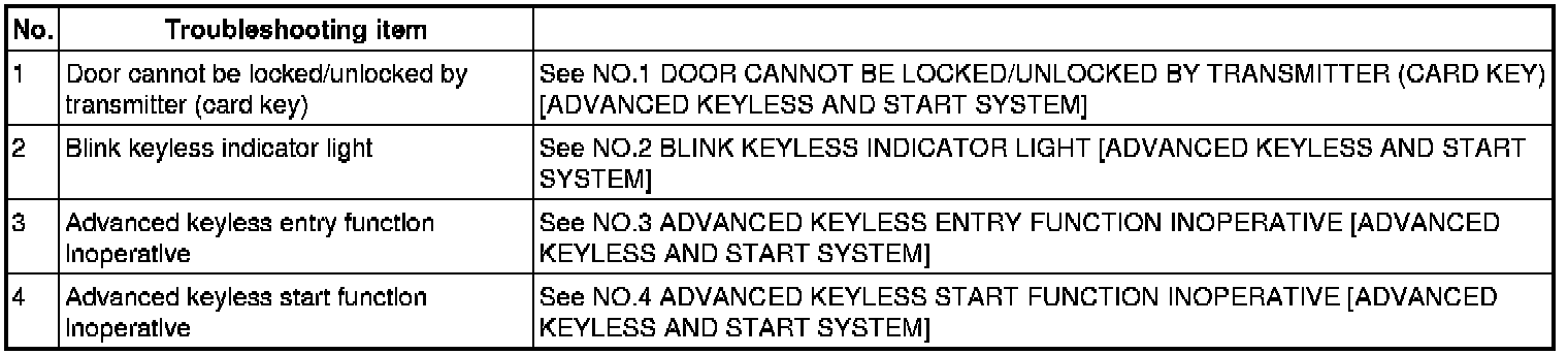 SYMPTOM TROUBLESHOOTING INDEX [ADVANCED KEYLESS AND START SYSTEM]