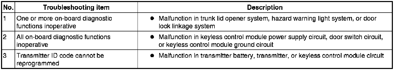 Symptom Troubleshooting Index [Keyless Entry System]