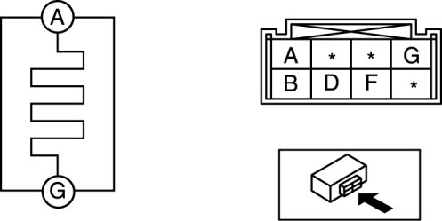 2. Inspect for continuity between the power outer mirror heater terminals.
