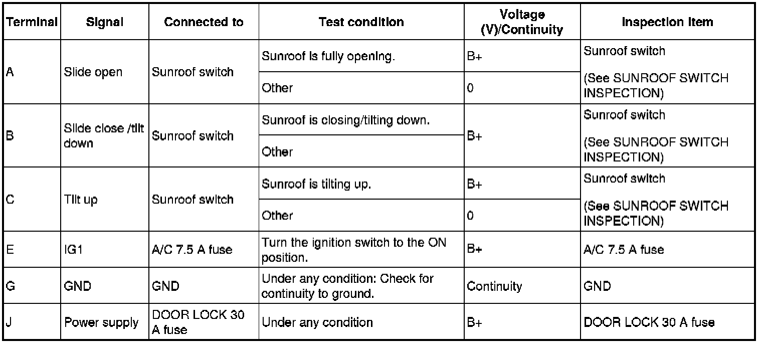 4. If the parts and wiring harnesses are okay but the system still does not work properly, replace the sunroof relay.