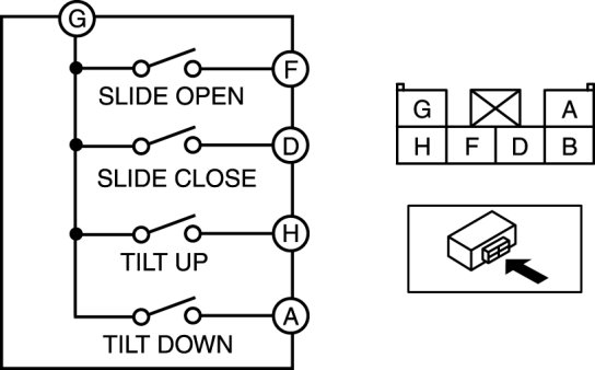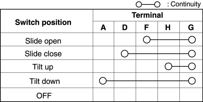 Verify that the continuity between the sunroof switch is as indicated in the table.