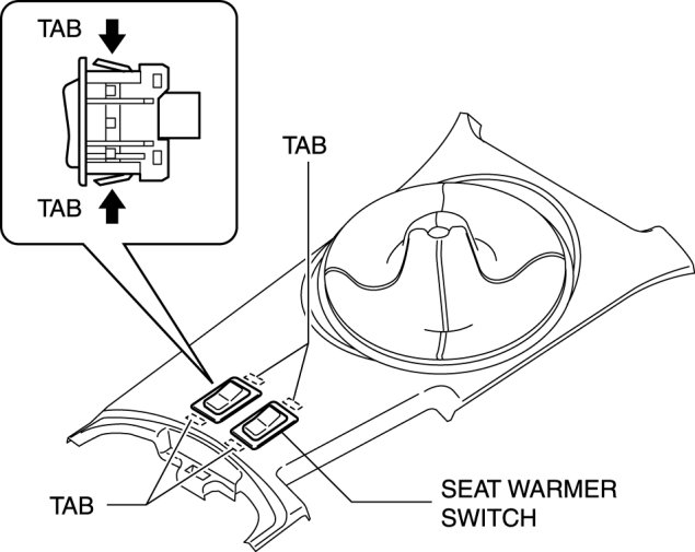 5. Squeeze the tabs of seat warmer switch and pull it outward to remove it.
