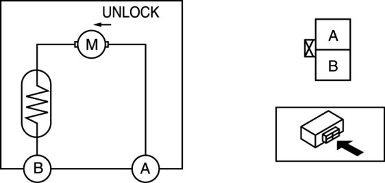 1. Apply battery positive voltage and connect the ground to the corresponding the trunk lid opener terminals, and inspect the trunk lid opener operation.