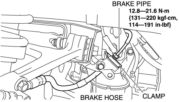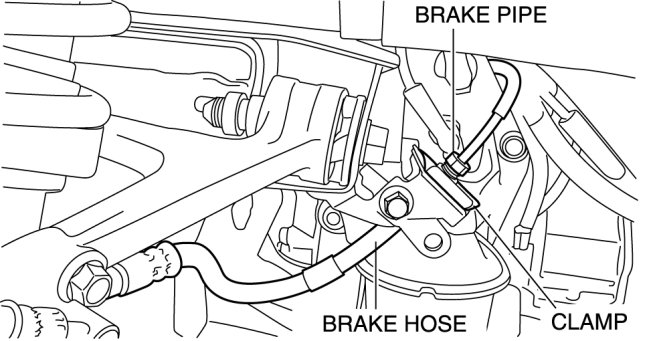 4. Remove the clamp and disconnect the brake hose.
