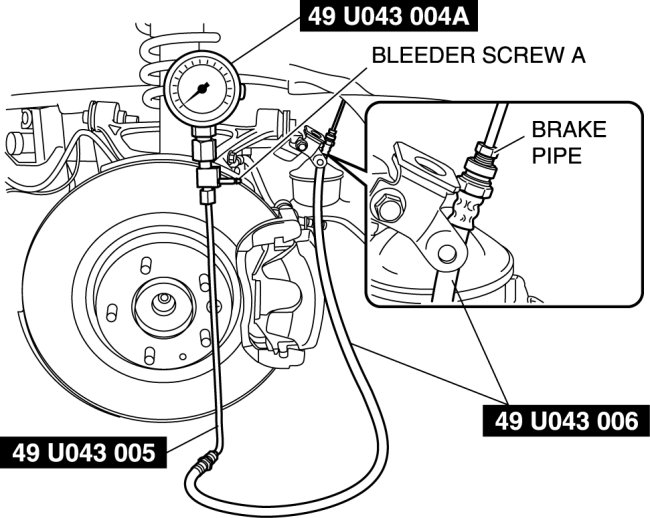 6. Perform air bleeding of the SST and brake line from bleeder screw A.