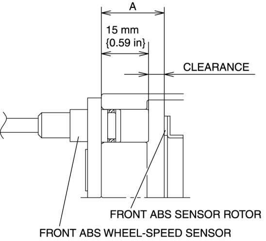4. Verify that the clearance between the front ABS sensor rotor and the front ABS wheel-speed sensor is as indicated below.