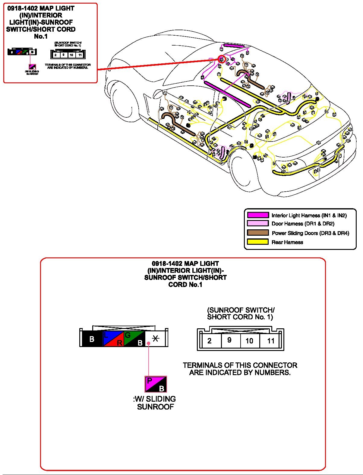 Map Light/Interior Light-Sunroof Switch/Short Cord No.1: