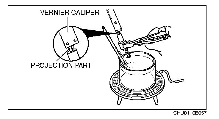 2. Heat the container and verify that the projection protrudes more than the minimum specification when the engine oil temperature is 60°C (140°F).