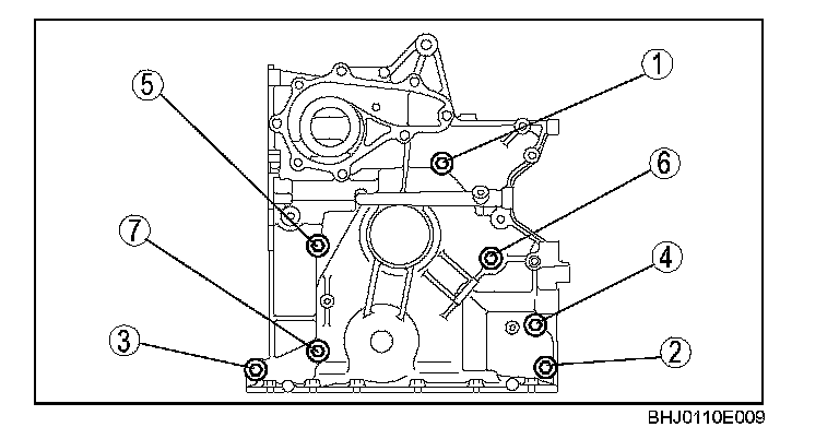 Loosen the engine front cover installation bolts in the order shown in the figure.
