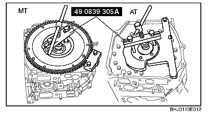 Flywheel (MT), Counterweight (AT) Disassembly Note1. Lock the flywheel (MT) or counterweight (AT) against rotation using the SST.