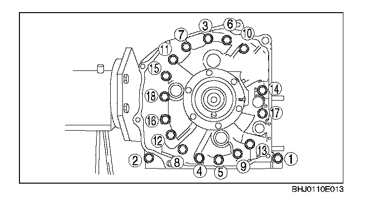 Loosen the tension bolts in 2-3 passes in the order shown in the figure and remove them.