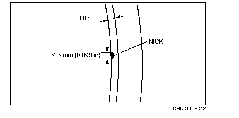 2) Circumferential width of any damage along the lip.