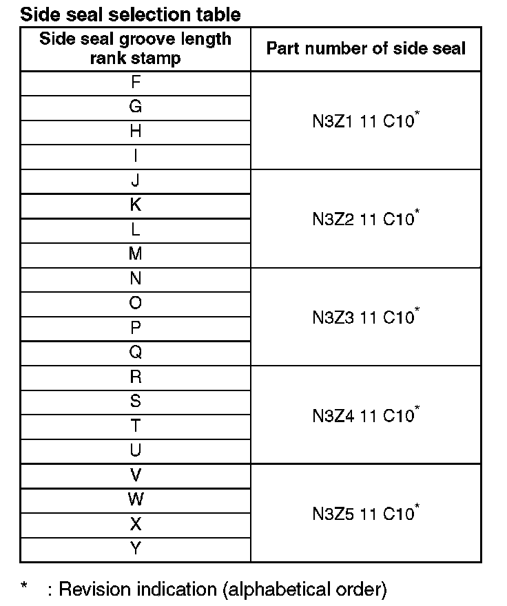 ^ If a new side seal is inserted, measuring the clearance is not recommended to maintain an appropriate side seal clearance value.