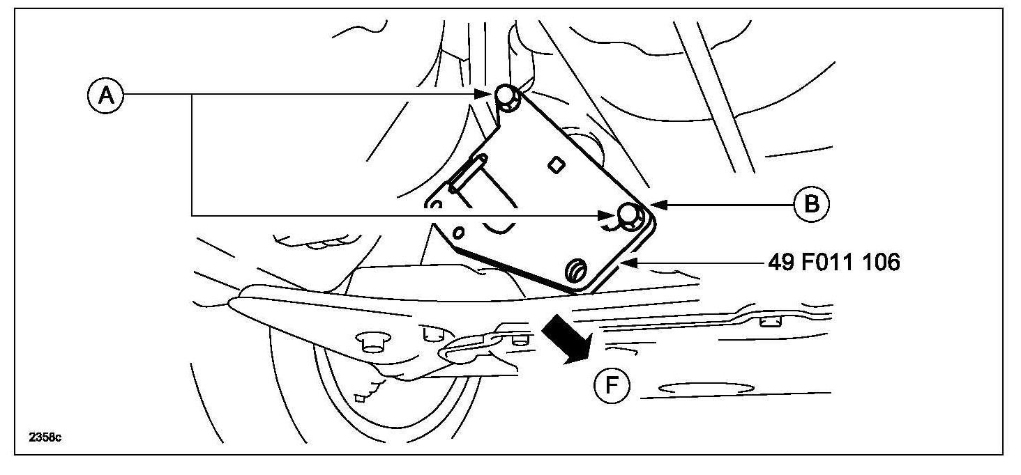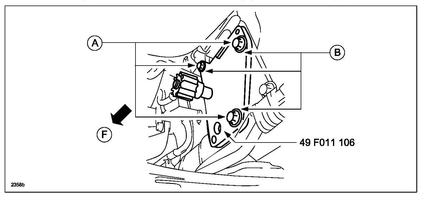 ^ A/T - Install the SST using the starter installation bolts (A) and washers (B).