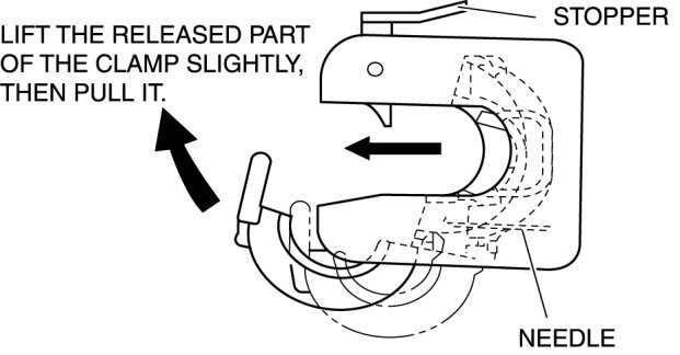 - Be careful not to bend the SST (49 N061 0A0) needle when removing the clamp. If the SST (49 N061 0A0) needle is bent, the clamp can not be opened.
