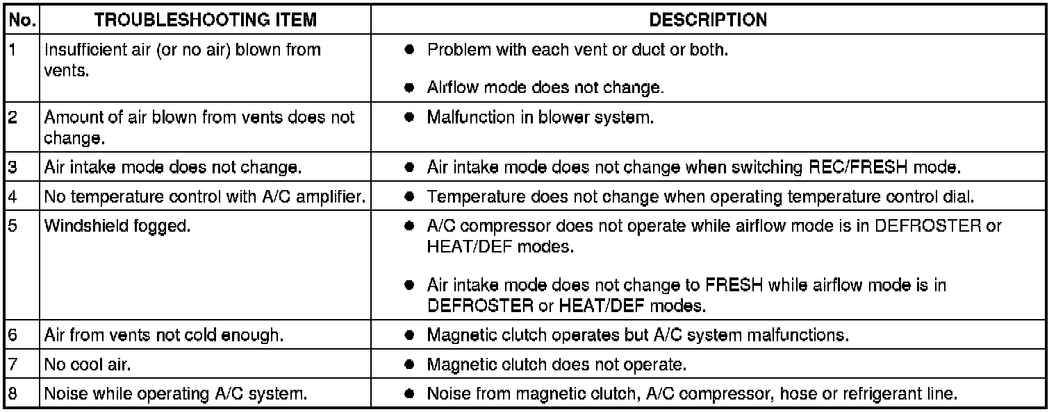 Troubleshooting Index [Full-Auto Air Conditioner]