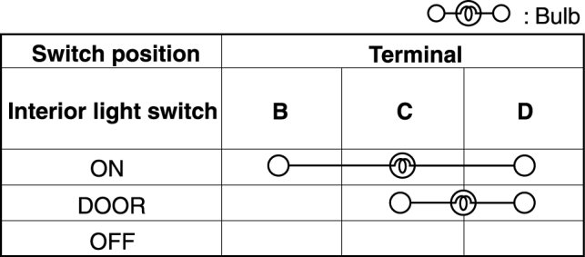 2. Verify that the continuity between the interior light terminals is as indicated in the table.