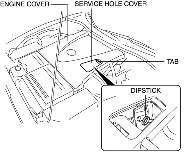 4. Remove the service hole cover attached to the engine cover using the following procedure.