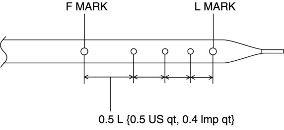- The dipstick is graduated in 0.5 L {0.5 US qt, 0.4 lmp qt} intervals as a reference for oil replenishment.