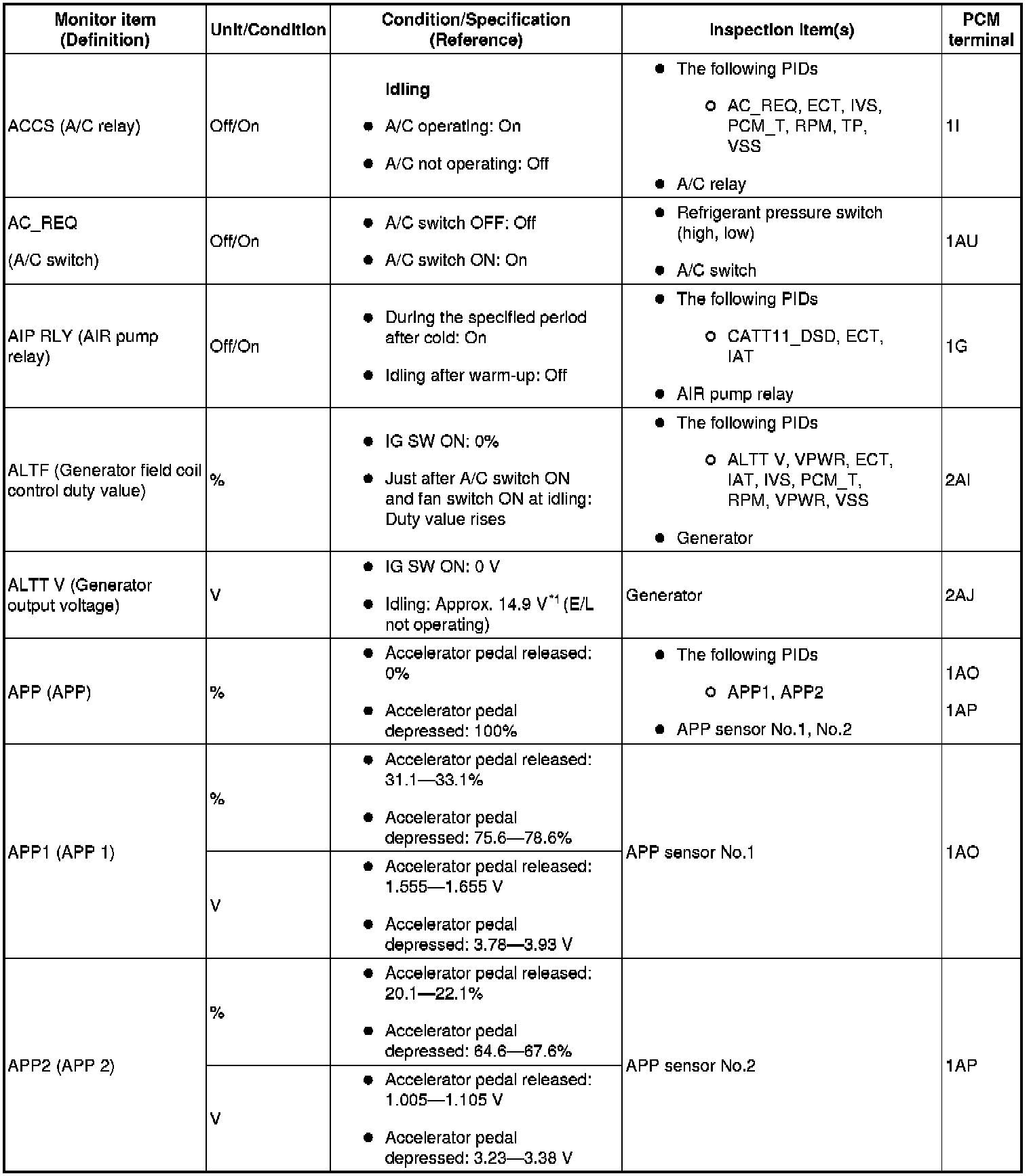 PID/Data Monitor Table (Reference) (Part 1):