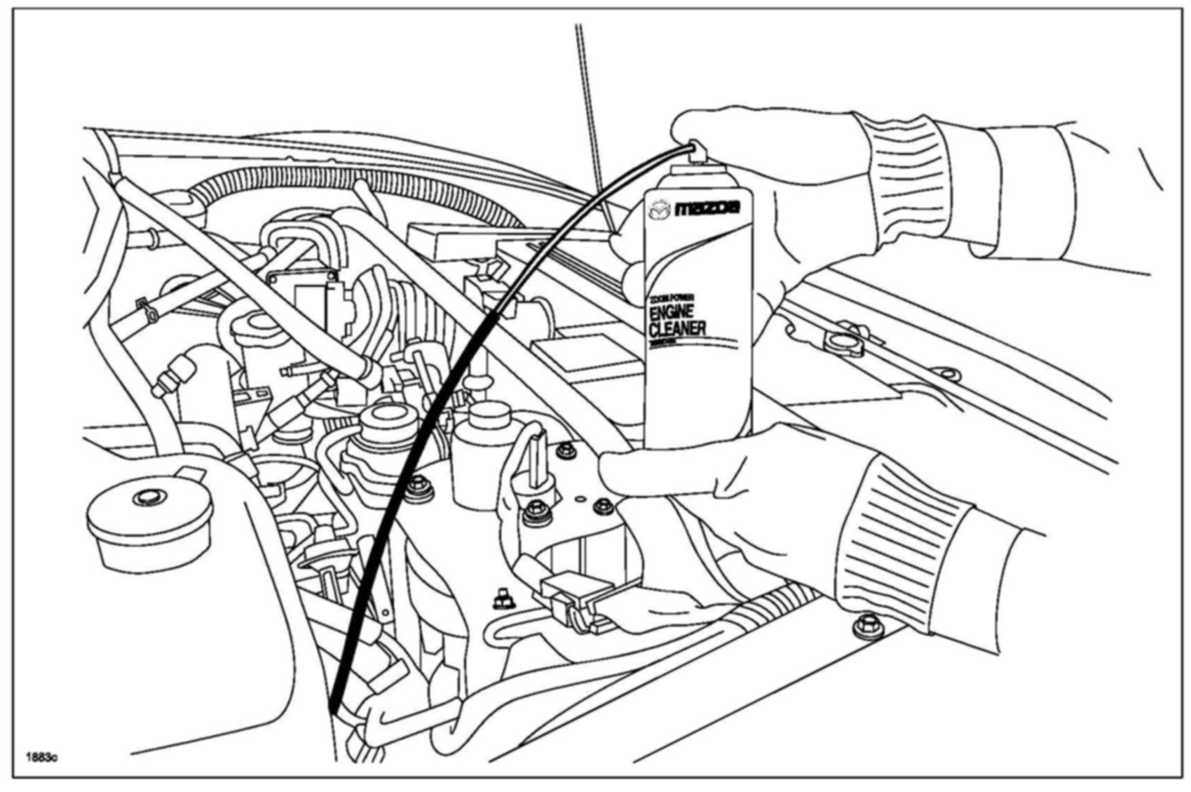 8. Have an assistant crank the engine. While cranking the engine, simultaneously depress the spray nozzle of the engine cleaner for a duration of 10 seconds. After 10 seconds, stop spraying and cranking at the same time. DO NOT depress accelerator pedal while cranking.