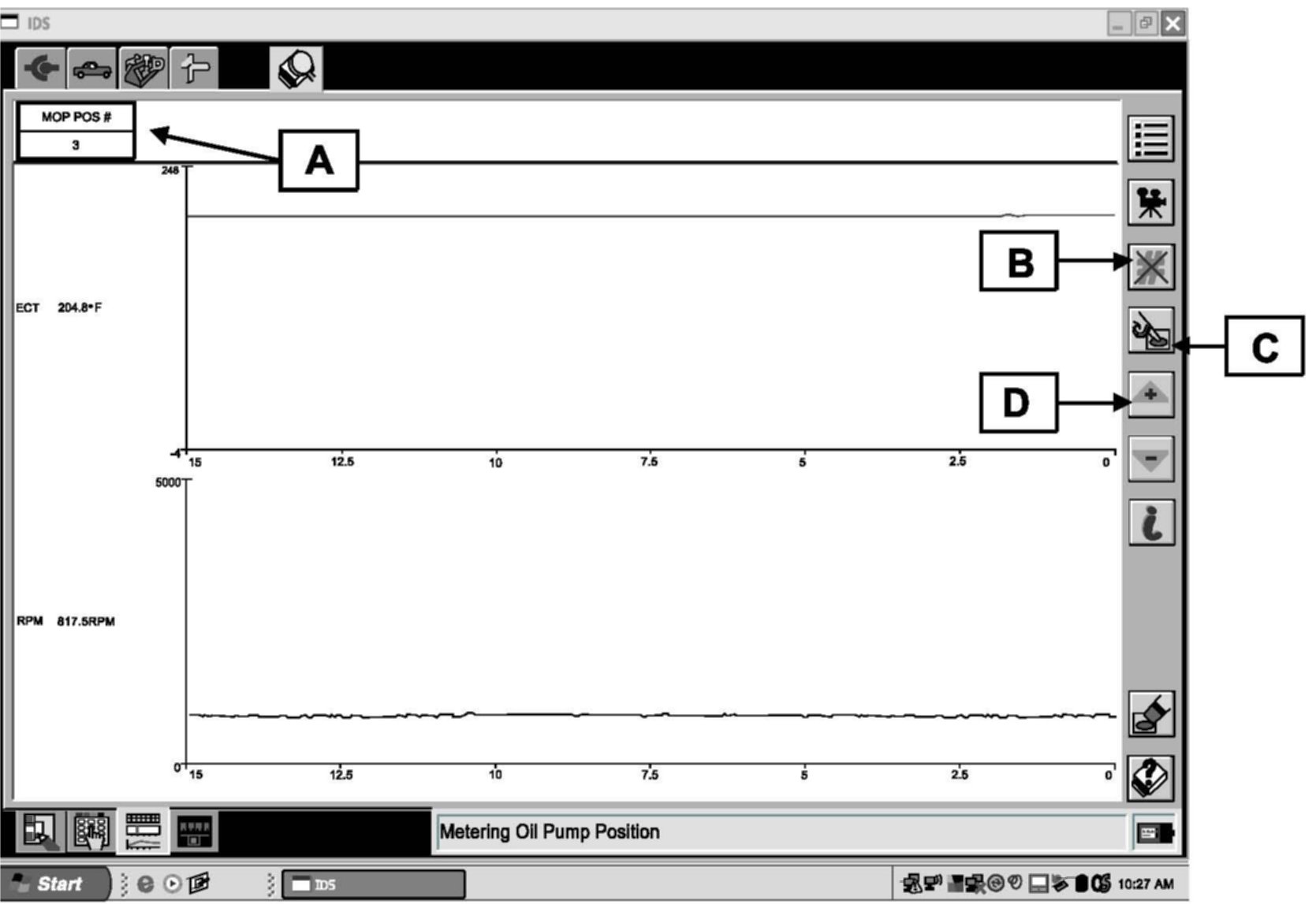 22. Using DATALOGGER, select MOP POS# and RPM.