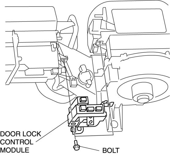 4. Remove the connector clip installed to the bracket by shifting the door lock control module downward.