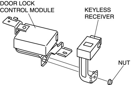6. Remove the nut, then remove the keyless receiver form the door lock control module.