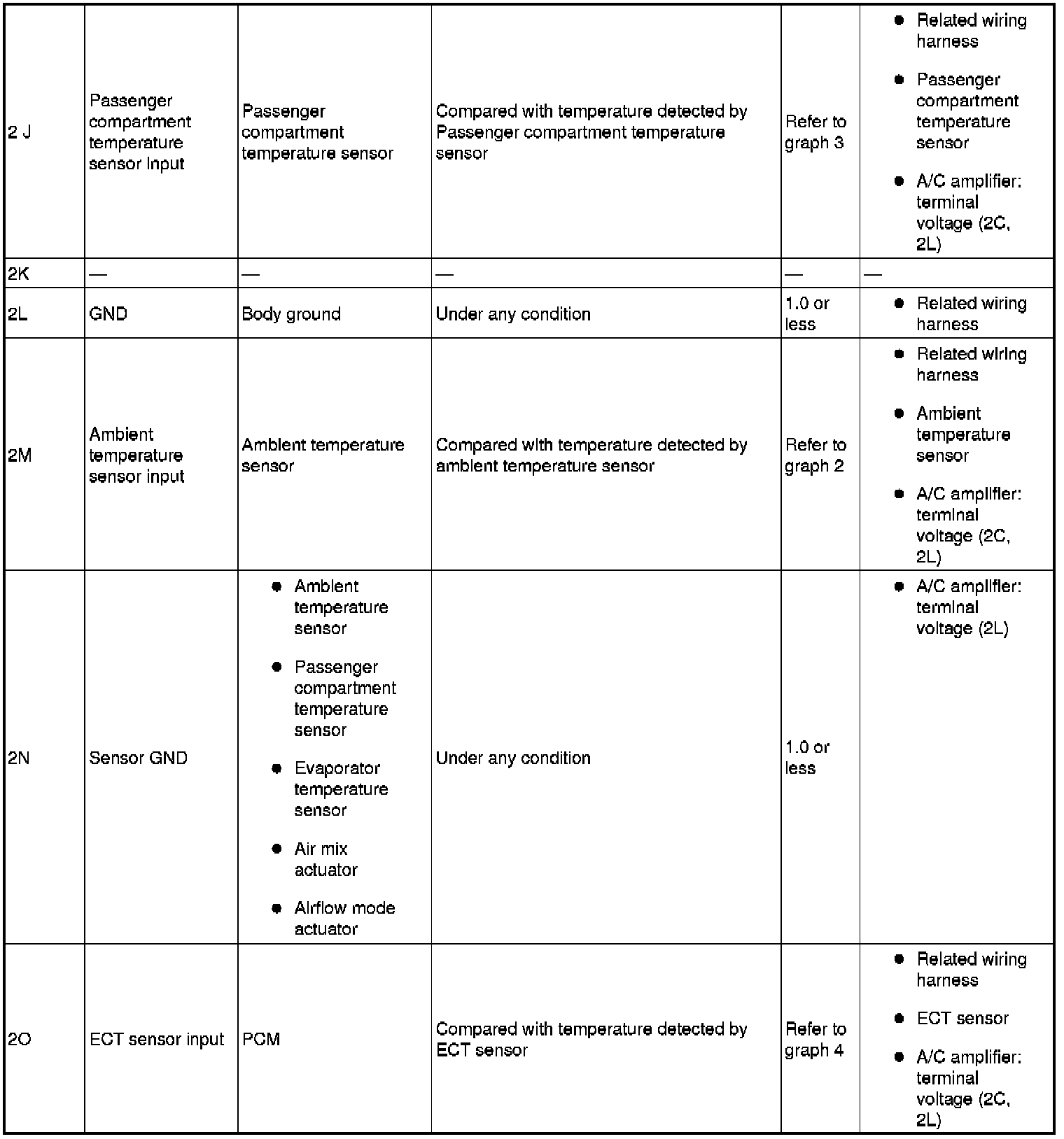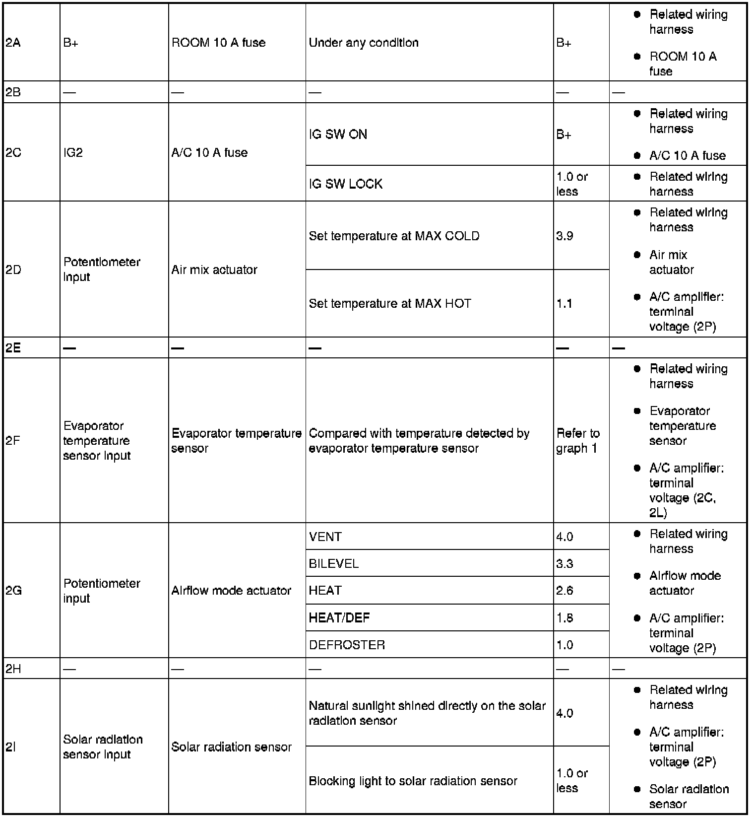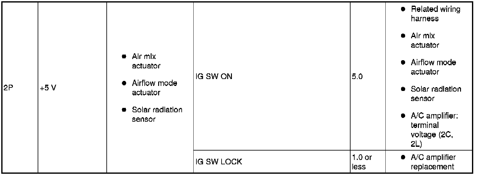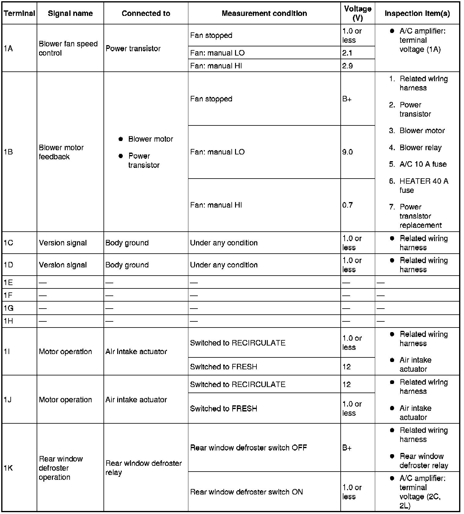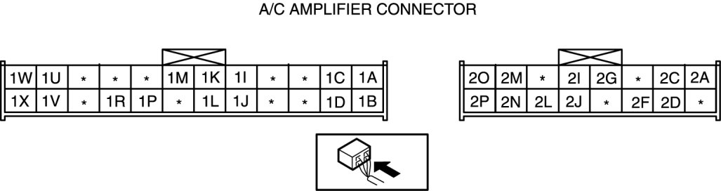 - If the parts under "Inspection item(s)" are found to be normal (except for terminal 1A), replace the A/C amplifier.