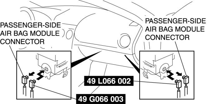 2. Disconnect the passenger-side air bag module connector.