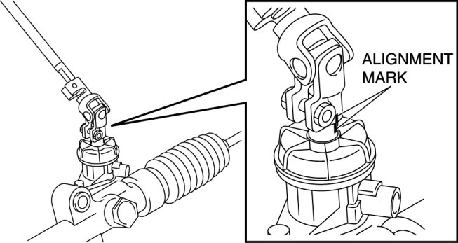 1. Place alignment marks on the intermediate shaft joint, and the steering gear and linkage for proper installation.