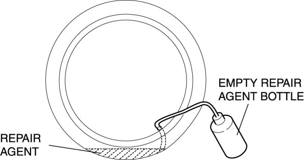 - Be careful not to spill the repair agent from inside of the tire.