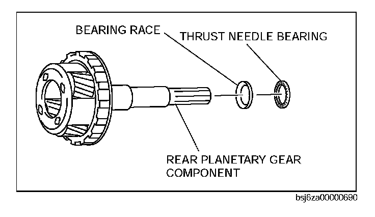 17. Apply ATF to the bearing race, thrust needle bearing and install to the rear planetary gear component.
