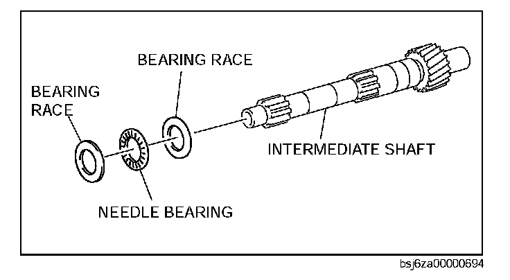 21. Apply ATF to the bearing race, needle bearing race and install to the intermediate shaft.