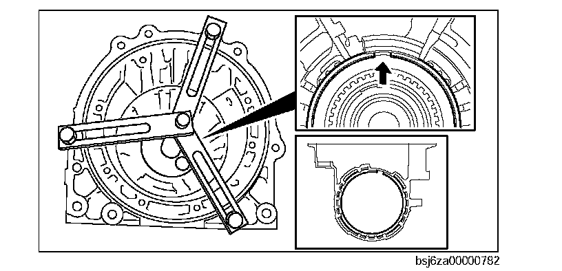 Caution: If the snap ring is not installed in the correct direction, the automatic transmission may not operate normally.