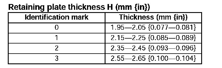 Note: There are 8 types of retaining plates for the pack clearance adjustment. Select the one with the most suitable thickness.