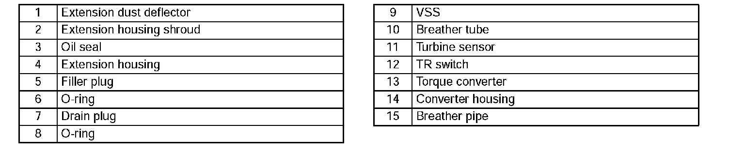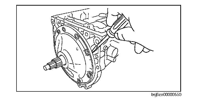 Caution: Do not damage the fitting surface of the transmission case and the extension housing.