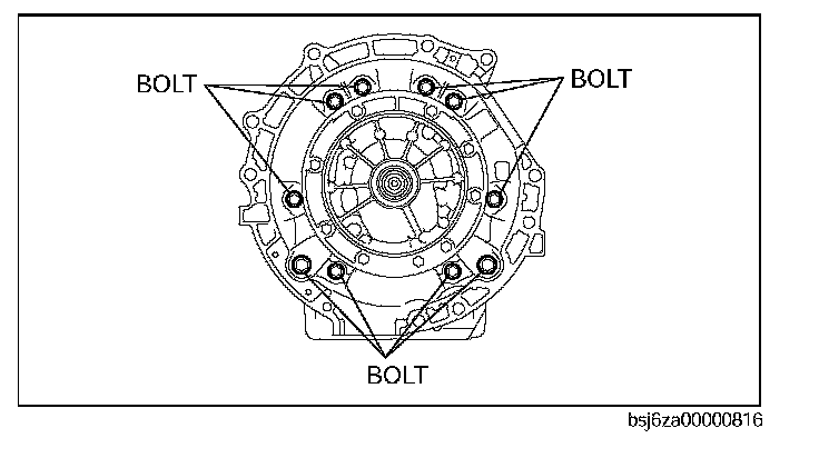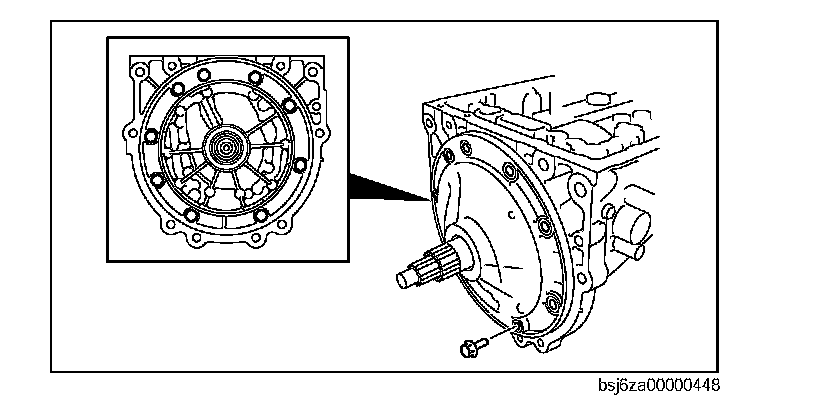 Caution: Do not damage the fitting surface of the transmission case and the converter housing.