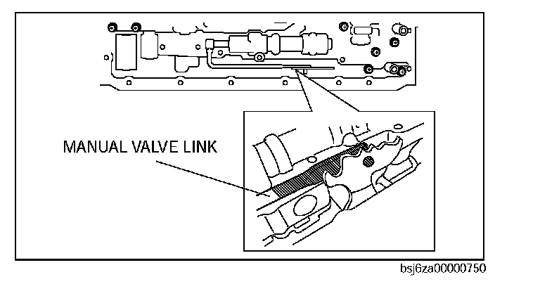 28. Disconnect the manual valve link and remove the control valve body component.