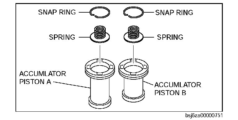 33. Remove the compression spring from accumulator piston A and B.