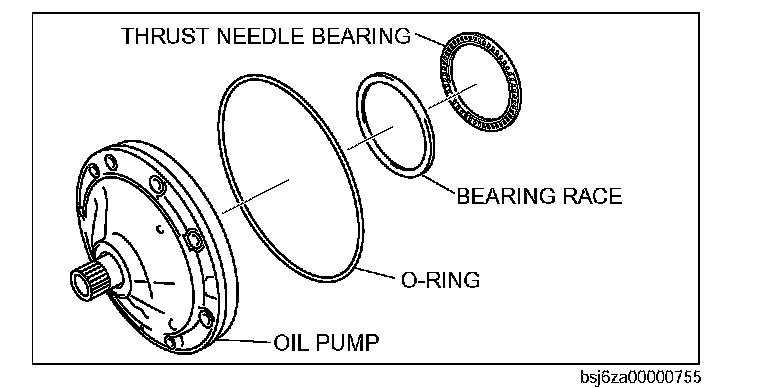 50. Remove the thrust needle bearing and bearing race from oil pump.