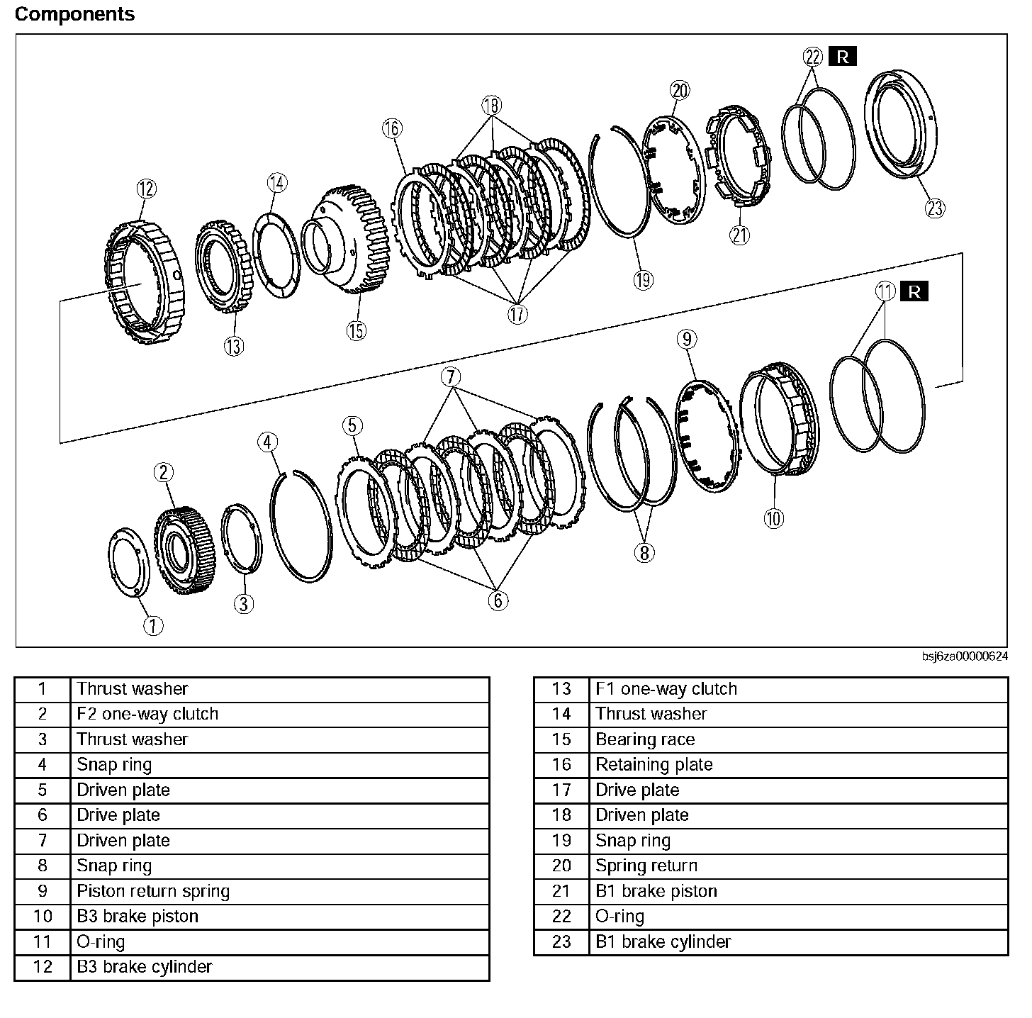 B1, B3 Brake and F1, F2 One-Way Clutch Component Disassembly: