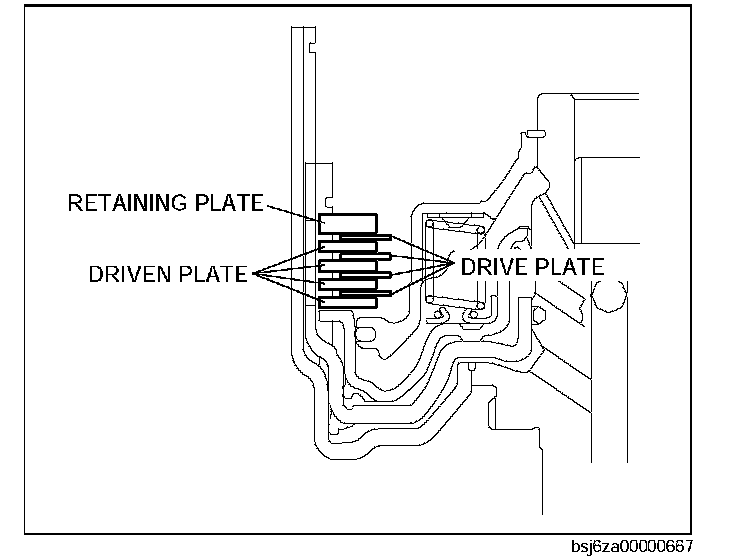 3. Remove the retaining plate and the drive plate and the driven plate from the clutch hub component.