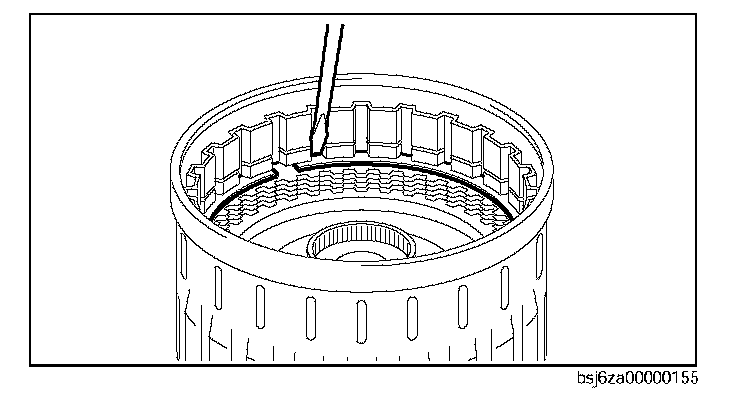 Disassembly Procedure1. Using a flathead screwdriver, remove the snap ring from the C3 clutch piston component.
