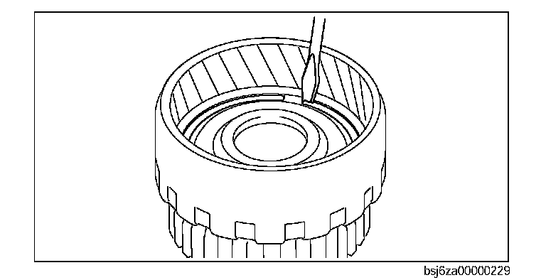 Disassembly Procedure1. Using a flathead screwdriver, remove the snap ring from the middle planetary ring gear.